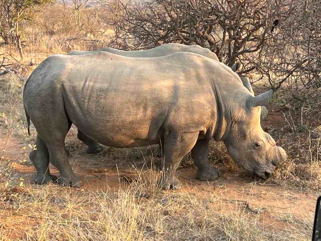 After arriving at our lodge, we checked into our room and then went on a sunset safari. While we have yet to see lions, leopards, or wild dogs, we have seen plenty of elephants (including babies), giraffe, buffalo, hippos, crocodiles, zebra, snd some very close-up encounters with white rhinos.
