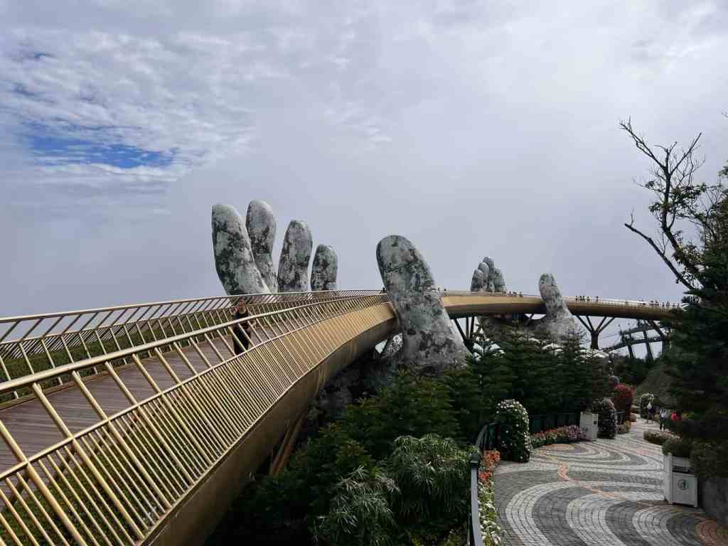 Our first stop was to Sun World at Ba Na Hills. Think Disney World, except on the side of a jungle-clad mountain. The place is incredible! Without a doubt, my favorite part was seeing the infamous Golden Bridge, which is otherwise known as the “Hands of God Bridge”.
