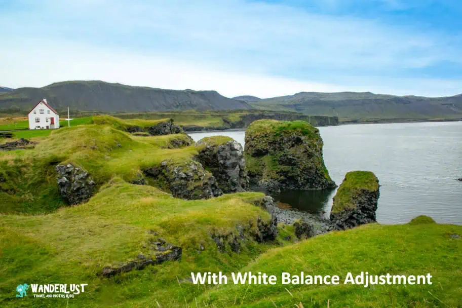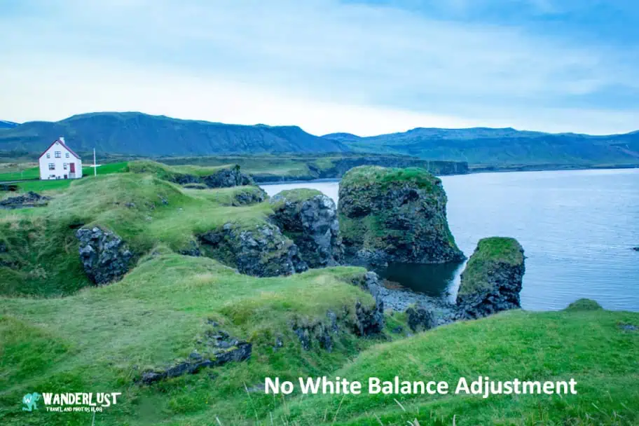 This adjustment helps to bring out the rich hues of the natural scenery, from the deep greens of the moss-covered lava fields to the striking blues of glacial ice. You can really notice the difference in the example of the two photographs I took in Arnarstapi Harbour above. Without the white balance adjustment, the photo looks very cold and clinical. By changing the white balance setting to “shade”, it really brought out the warmth in the landscape.