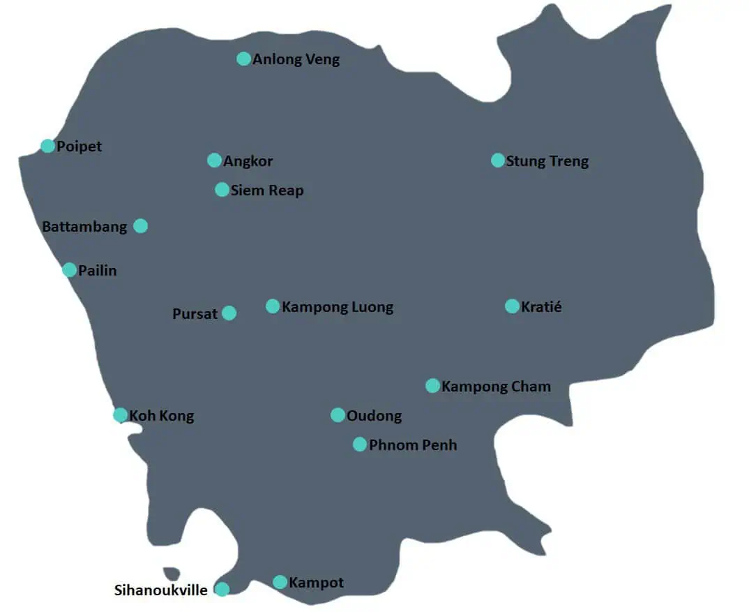 As you plan your Cambodia travel, you will want to start familiarizing yourself with the country. This way, you will better understand which cities and other attractions you want to see. To help you with this, I have included maps that outline the key cities in Cambodia for you to review below.